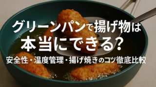 グリーンパンで揚げ物を失敗しないためのポイントをまとめました。くっつき対策、油なし調理の注意点、焦げの落とし方まで丁寧に解説します。