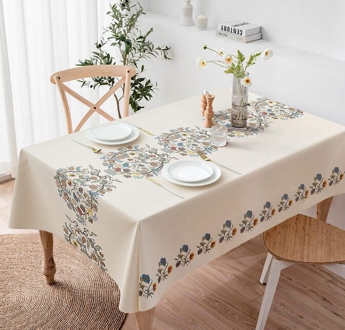 【Amazon】LOHOMEVE テーブルクロス カーキ 刺繡