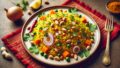 - 蒸らしておいたクスクスをフォークでほぐし、具材と一緒に盛り付ける。