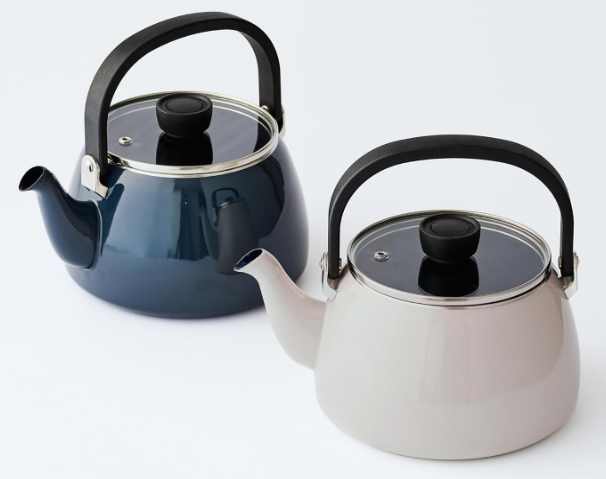 このケトルは、金属の素地をガラス質で覆った琺瑯(ほうろう)素材で作られています。