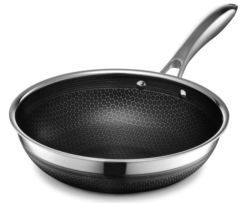 HexCladの中華鍋は、ステンレスとアルミの3層構造に独自の六角形ノンスティック加工を施したユニークな鍋。