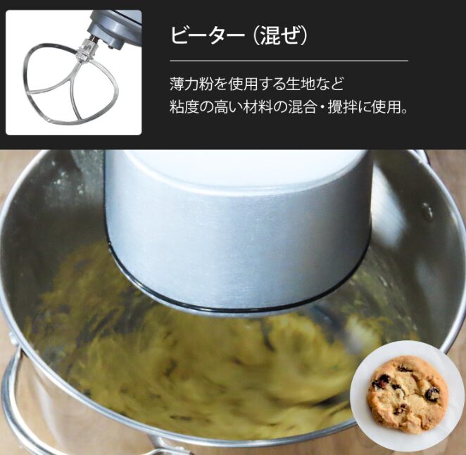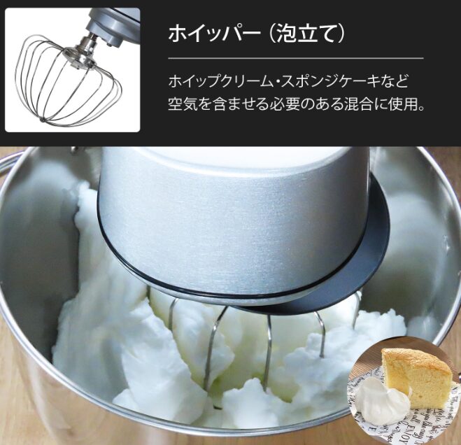 結果として短時間で均一に攪拌でき、メレンゲのキメ・ケーキ生地のつながり・パンのグルテン形成など、仕上がりの再現性が上がります。