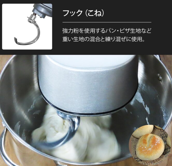 • 付属:ホイップ/ビーター/ドゥーフックの3種アタッチメント、ボウルカバー