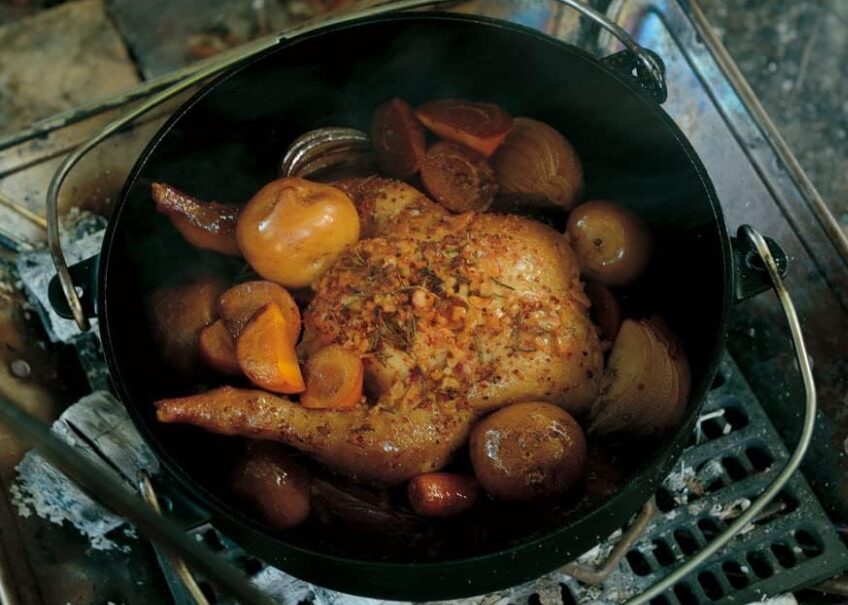 - スキレット(逆さ)+ ポット:最大容量で使える組み合わせ。丸鶏を丸ごと調理することも可能。
